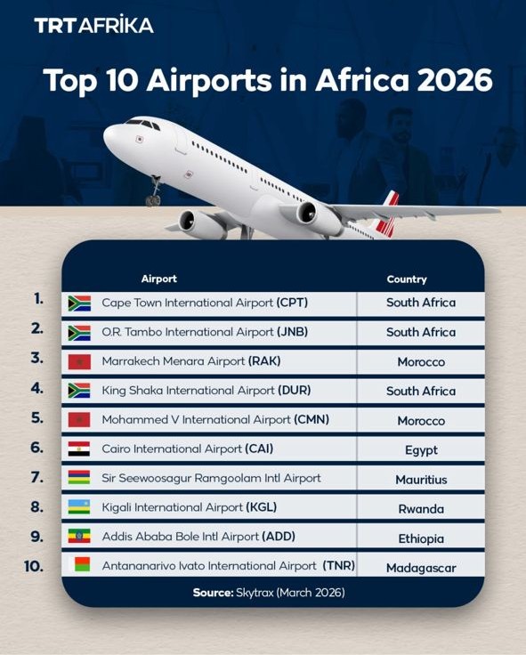 Airports in Morocco, Egypt, Mauritius, Rwanda, Ethiopia, and Madagascar completed the Top 10 African airports for 2026 — highlighting a wide geographical spread of aviation quality across the continent.