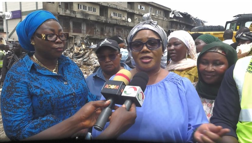 The Minister for Gender, Children and Social Protection, Naa Momo Lartey, in the company of MASLOC CEO, Abigail Elorm Mensah and Ashanti regional minister, visited the fire scene on Sunday.