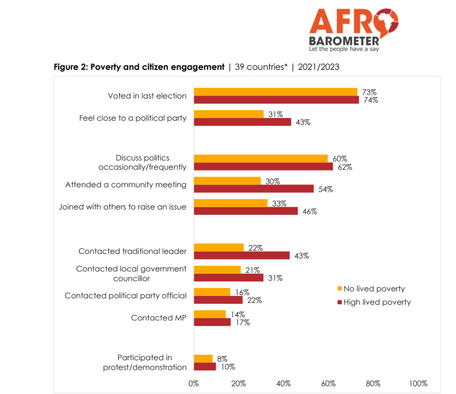 Contrary to common assumptions, the latest Afrobarometer report shows that Africa’s poorest citizens are more politically and civically engaged than the wealthy, and Ghana is no exception.
