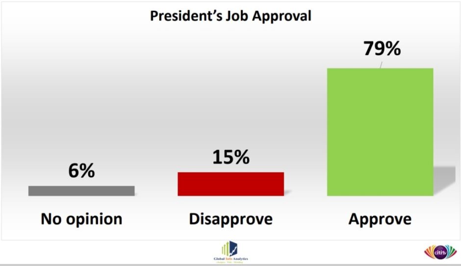 The comprehensive survey, which canvassed the opinions of over 4,300 NPP delegates from every corner of the nation, disclosed that an astounding 79% of respondents approve of the President’s job performance.