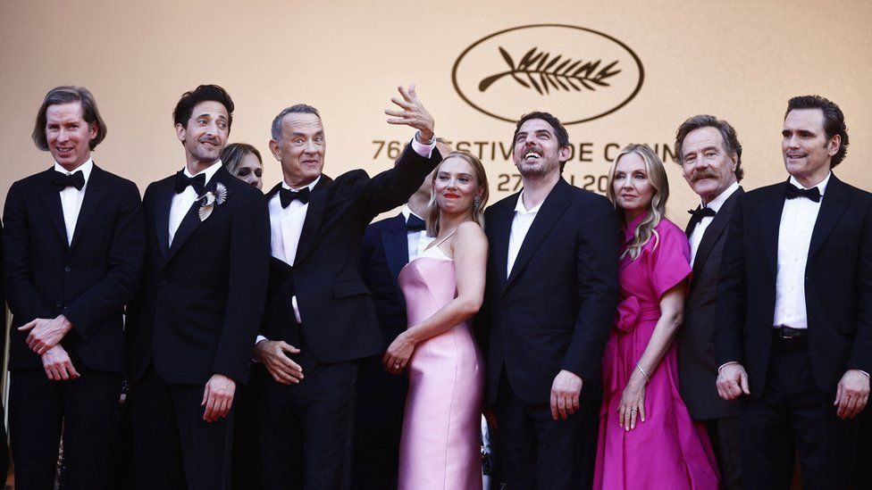 Director Wes Anderson and actors Adrien Brody, Tom Hanks, Matt Dillon, Scarlett Johansson, Bryan Cranston and Hope Davis posed for pictures at the Cannes Film Festival