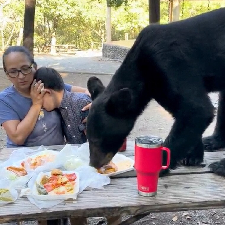 A picnic was interrupted when a hungry black bear approached a group of visitors, mounted their table and ate their food at Mexico’s Chipinque Ecological Park in the state of Nuevo León.