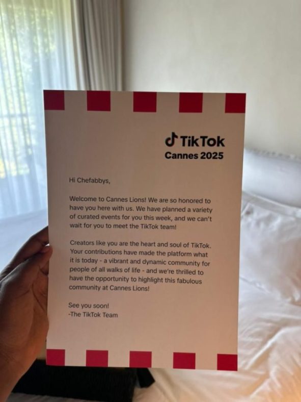 Ghanaian culinary sensation and digital trailblazer, Chef Abbys known off-screen as Abena Amoakoa Sintim-Aboagye has been selected as the only Ghanaian representative for TikTok at the prestigious 2025 Cannes Lions International Festival of Creativity in France.