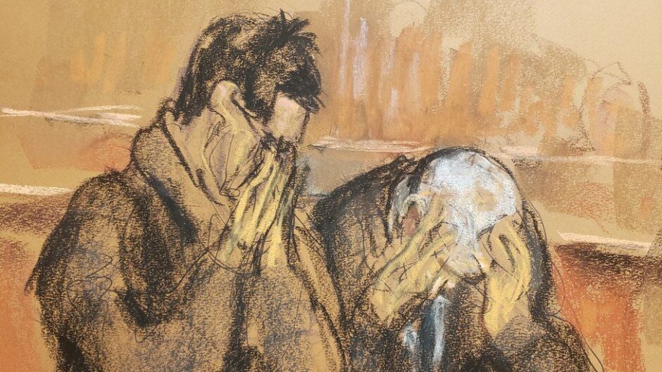 Barbara Fried and Joseph Bankman, parents of FTX founder Sam Bankman-Fried, reacts after the verdict is read in Bankman-Fried's fraud trial over the collapse of the bankrupt cryptocurrency exchange at federal court in New York City, U.S., 2 November, 2023, in this courtroom sketch.