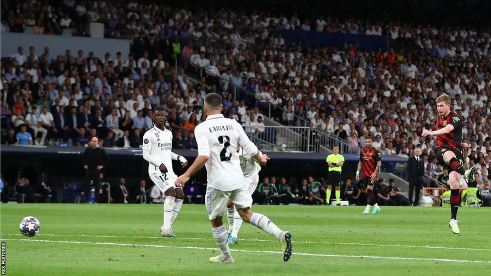 Ilkay Gundogan laid the ball off for De Bruyne, who thrashed a shot past his Belgium team-mate Courtois. Having also netted in 2020, De Bruyne is the first player in Champions League history to score in separate away games against Real in the knockout stages.