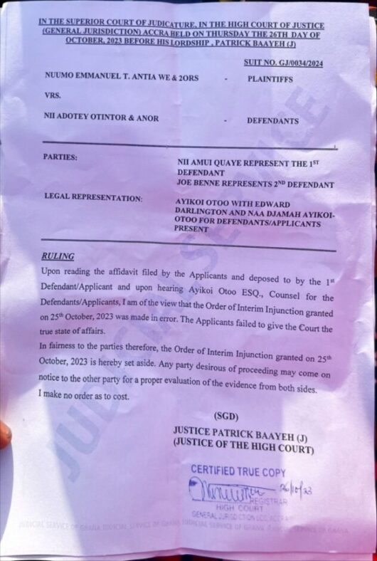 The ruling now paves the way for this weekend’s funeral for the late Queen mother of the Ga state, Naa Dede Omaedru III.