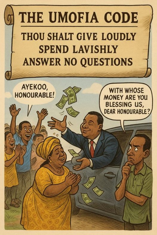 Here, affliction came not by malaria or power cuts, but by a strange swelling of the ego—Public Charititis Magnifica. A peculiar condition that begins in the wallet and ends with untraceable generosity funded by what Umuofians politely call “not your father’s money.”