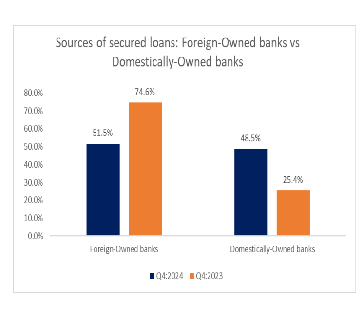 “The share of the value of secured loans granted by domestically-owned banks increased to 48.5 percent in Q4:2024 from 25.4 percent in Q4:2023”, the report highlighted.