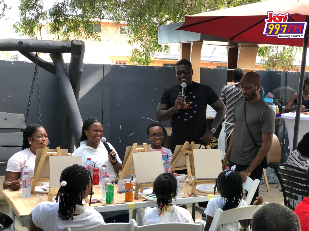 Some families and friends have gathered at the Villandro Residence in Accra for Joy FM’s ‘Drive Time Family Sip and Paint with Lexis Bill’.