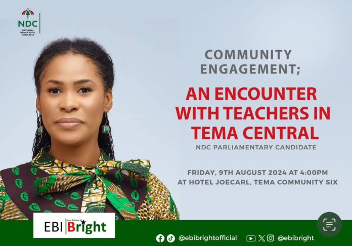 The NDC parliamentary candidate for Tema Central, Hon. Ebi Bright, engaged teachers across public schools, including the first and second cycle phases. The meeting was to ascertain the problems facing the school and its pupils and help to address them if elected member of parliament on 7th December 2024. She also answered some questions from teachers.