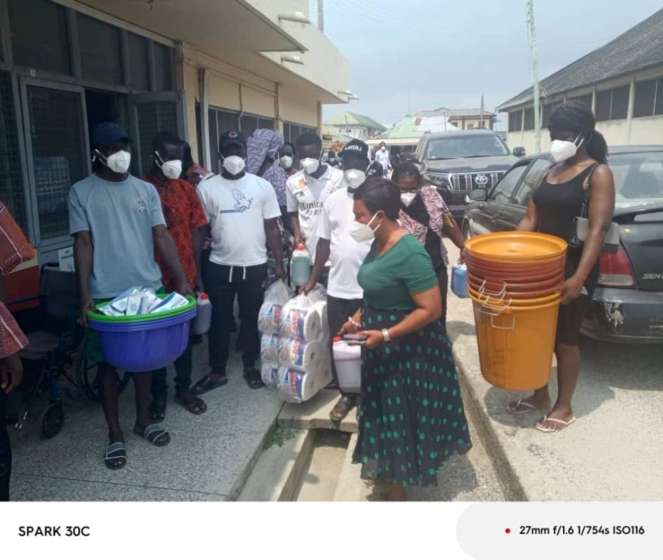 The donated items include hand sanitizers, face masks, tissues, and an undisclosed amount of money, all intended to support healthcare efforts at the Winneba Municipal Hospital.
