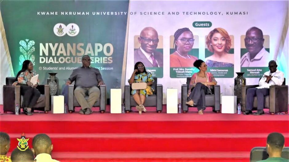 The Nyansapo Dialogue Series, a collaboration with the KNUST SRC brings together selected distinguished KNUST alumni to interact with students to exchange ideas to inform a more responsible attitude towards the realization of KNUST’s vision.