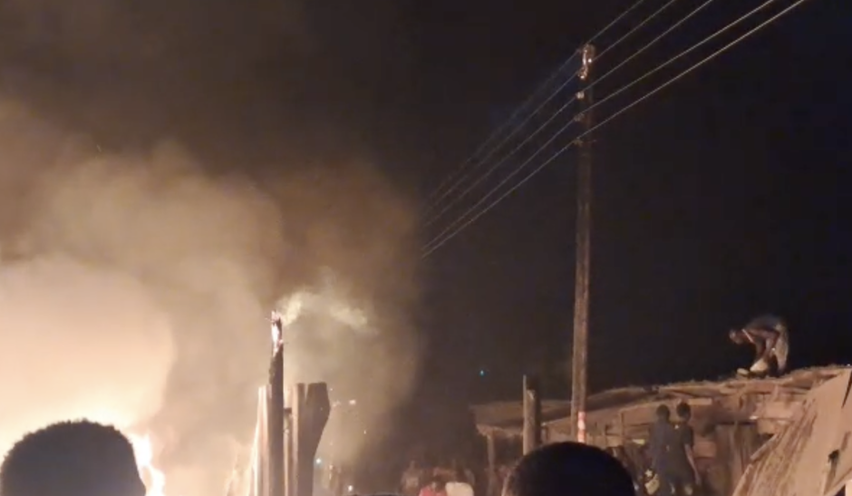 A fierce fire outbreak engulfed multiple wooden and container structures along the Agbogba to Ritz Junction Road near Madina, Accra, leaving behind a trail of destruction.