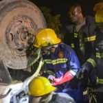 Personnel from the Akropong Fire Station swiftly responded to a late-night accident at Adukrom Waterworks Junction in the Okere District of the Eastern Region, rescuing a driver from a mangled truck.