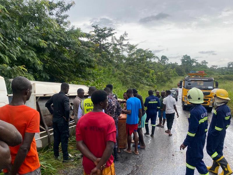 Fuel tanker overturns and blocks Morso-Kurofa road at Asante Akyem South