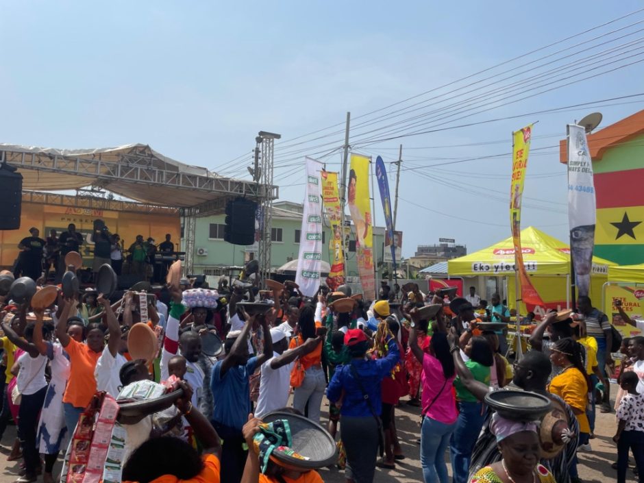 Call them enthusiasts, devotees, or aficionados, hundreds of Ghanaians from all walks of life on Thursday followed their love for the popular local dish, fufuo (fufu) and stormed the precincts of the headquarters of the Multimedia Group Limited at Kokomlemle in Accra, organised by Adom TV.