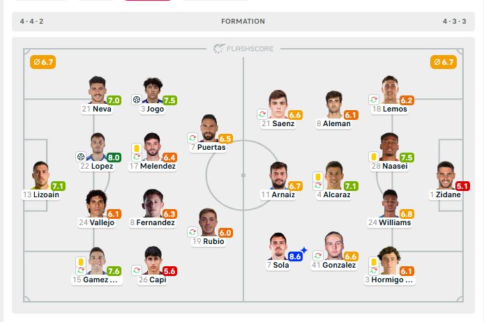 He outperformed several players on both sides, with even Albacete’s Lopez and Francisco Gamez Lopez recording ratings of 8.0 and 7.6 respectively, while his own teammate registered the highest rating of 8.6.