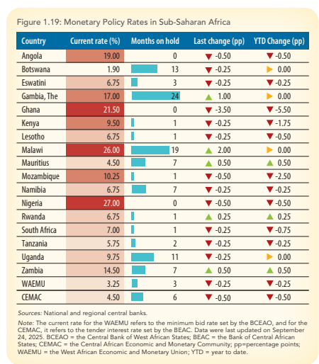 Ghana ranks 3rd in Sub-Saharan Africa with the highest policy rate, the World Bank has disclosed in its October 2025 Africa Pulse Report.