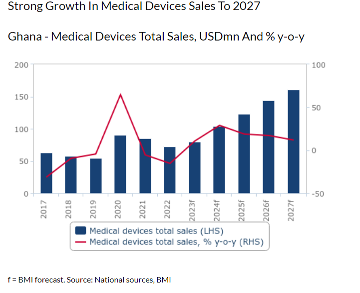“We believe ongoing health infrastructure projects and rollout of the National Health Insurance Scheme will continue to support increased budgetary spending on health over the coming decades as well spending on pharmaceuticals and medical devices. We further highlight recovery in Ghana’s real Gross Domestic Product in 2024 after sharp declines in 2022 and 2023 will also support private spending on medical devices and medical devices imports in the country over our forecast period”, it explained.
