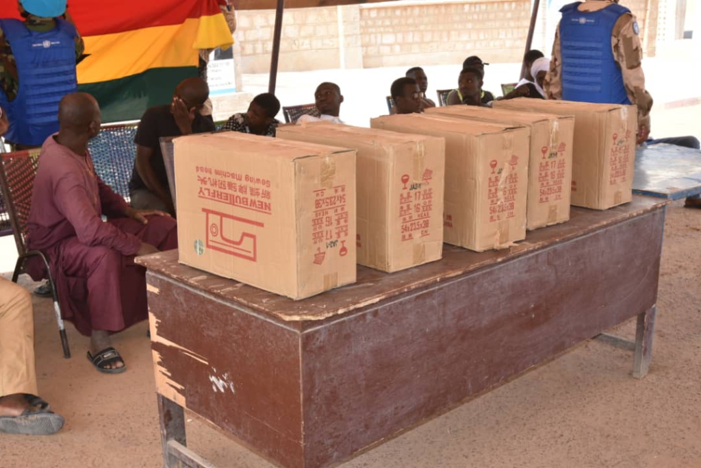 Beneficiaries were given new sewing machines by the Ghana contingent.