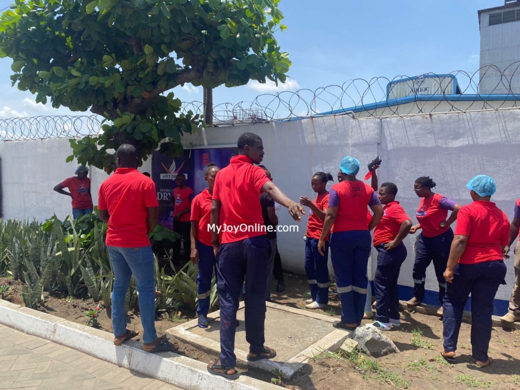 Speaking to JoyNews’ Samuel Mbura, an employee revealed that “the challenge we have is that our SSNIT has not been paid and our provident fund has not been paid for almost 18 months now. So this is what we are fighting for, we are not fighting the management or the MD.”