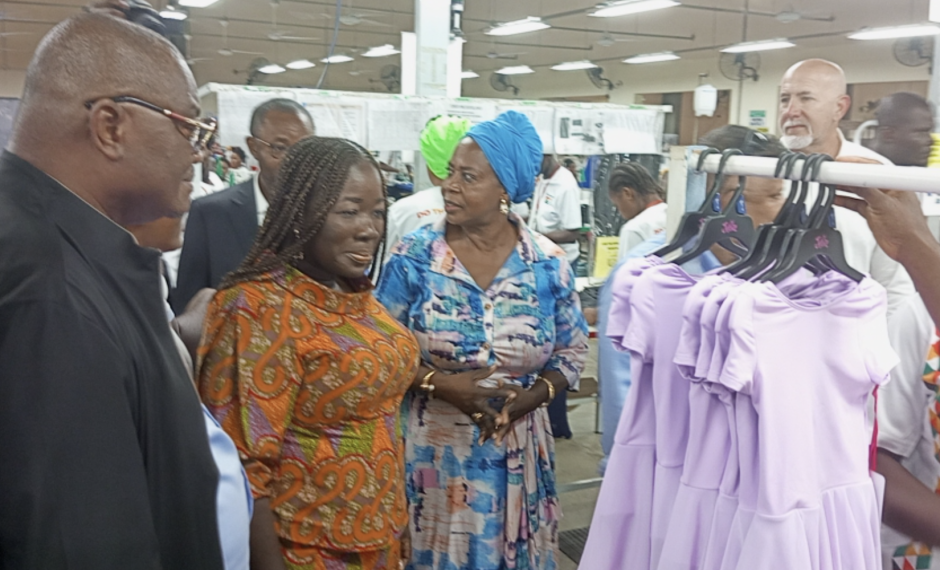 Accompanied by Mr Sylvester Mensah, the Chief Executive Officer of the Ghana Exim Bank, she visited the Dignity DTRT garment factory and the Tex Styles factory.