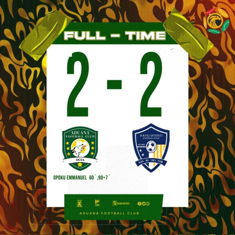 Young Apostles maintained their 12th position on the Ghana Premier League table following their draw with Aduana FC.