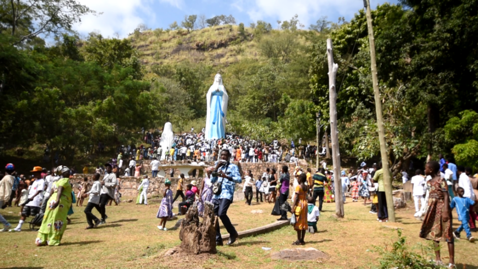 There are 14 stations of the cross and the highest statue of the Blessed Virgin Mary in West Africa, measuring about 8 meters at the Groto, together with other statues.