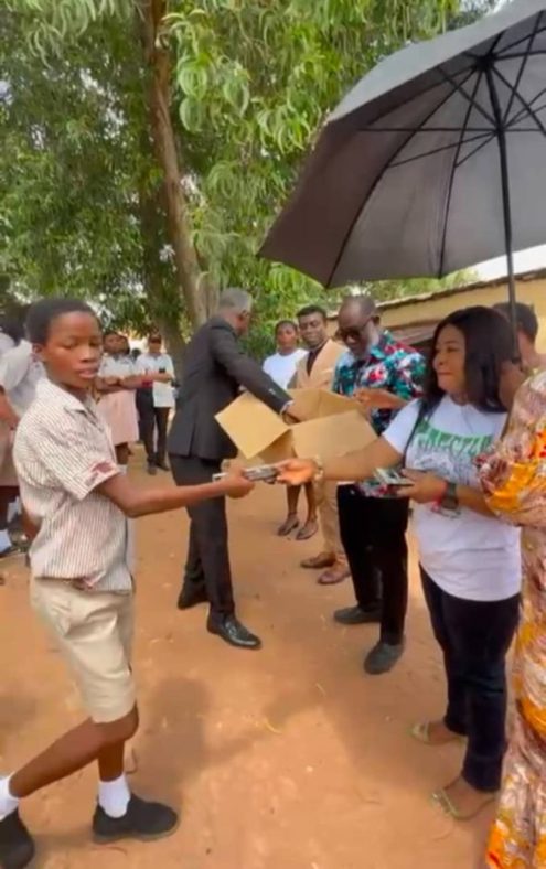 The Member of Parliament for Dome-Kwabenya Constituency, Hon. Elikplim Akurugu, on Wednesday, June 11, 2025, distributed mathematical sets to Basic Education Certificate Examination (BECE) candidates within the municipality to support their preparations for the ongoing national examination.