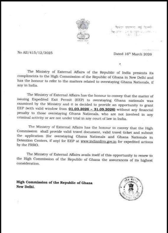 The initiative was formalised in a diplomatic communication dispatched to the Ghana High Commission in India on March 16, 2026. Under the new arrangement, the Indian government will issue an Expedited Exit Permit (EEP) to those who meet the criteria, facilitating a lawful and frictionless departure process.