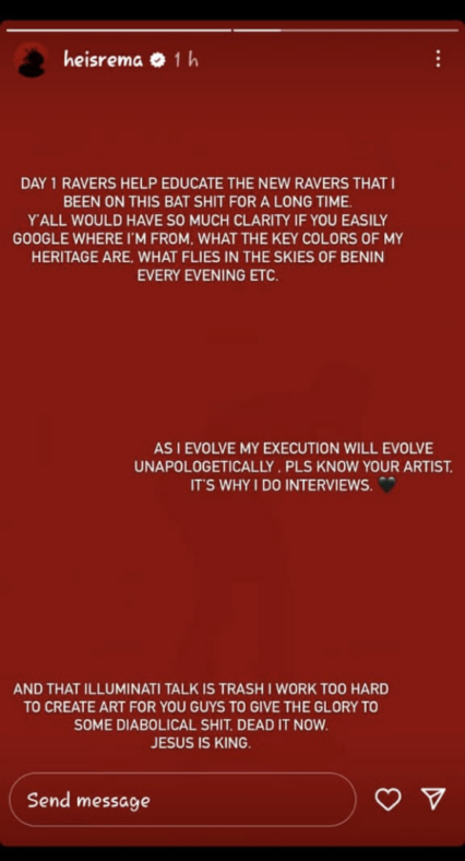 In a recent Instagram post, Rema made it clear that he refuses to attribute his success to “some diabolical sh*t”.
