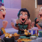 The animated film tells the story of a hugely successful female Kpop trio, who play enormous concerts at the same time as trying to save the world from evil forces.