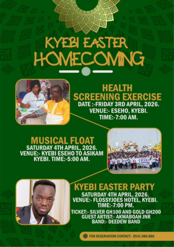 Residents and visitors are expected to converge at Kyebi this Easter weekend for the 2026 Kyebi Easter Homecoming, a two-day event combining health awareness activities with entertainment and community celebration.