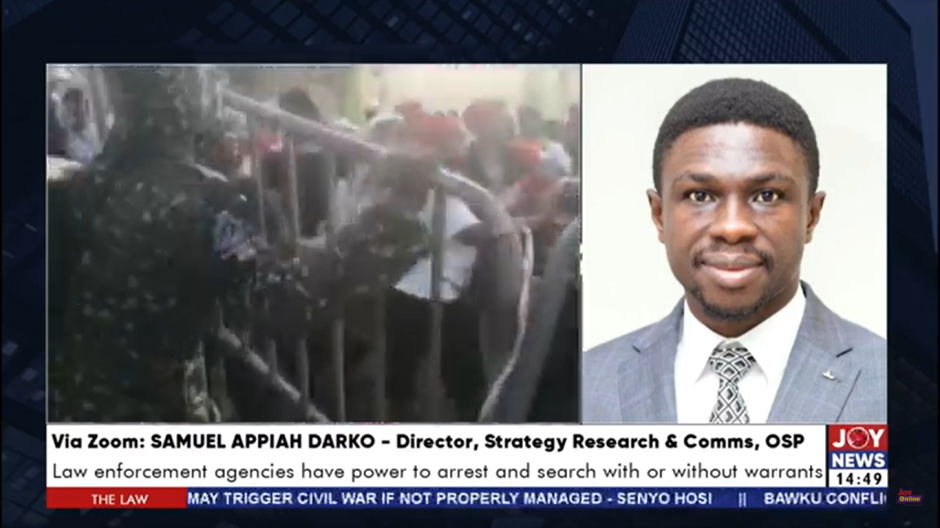 The Director of the Strategy, Research, and Communication Division at the Office of the Special Prosecutor (OSP), Samuel Appiah Darko, has clarified that law enforcement agencies are legally empowered to arrest and search with or without a court warrant.