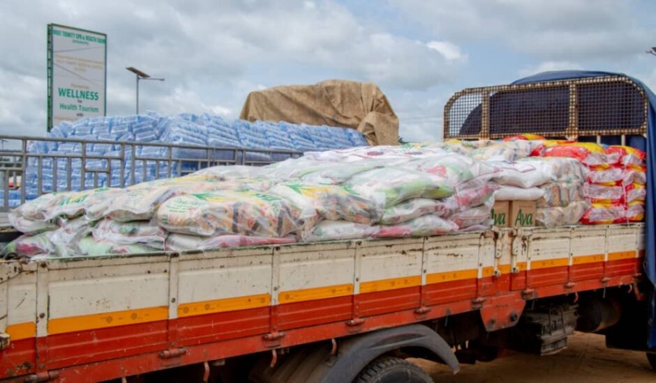 Mr. Leslie Mensah Tameklo provided 1,200 bags of water, 200 bags of rice, cooking oil, milk, and sugar to be distributed to victims in the affected communities.