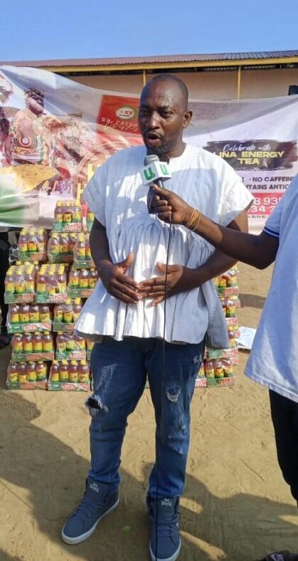 Dr. Caesar has donated 100 cartons of Lina Energy Tea to the people of Teshie during the special 2023 Homowo Celebration football match at the Teshie Salem Park.