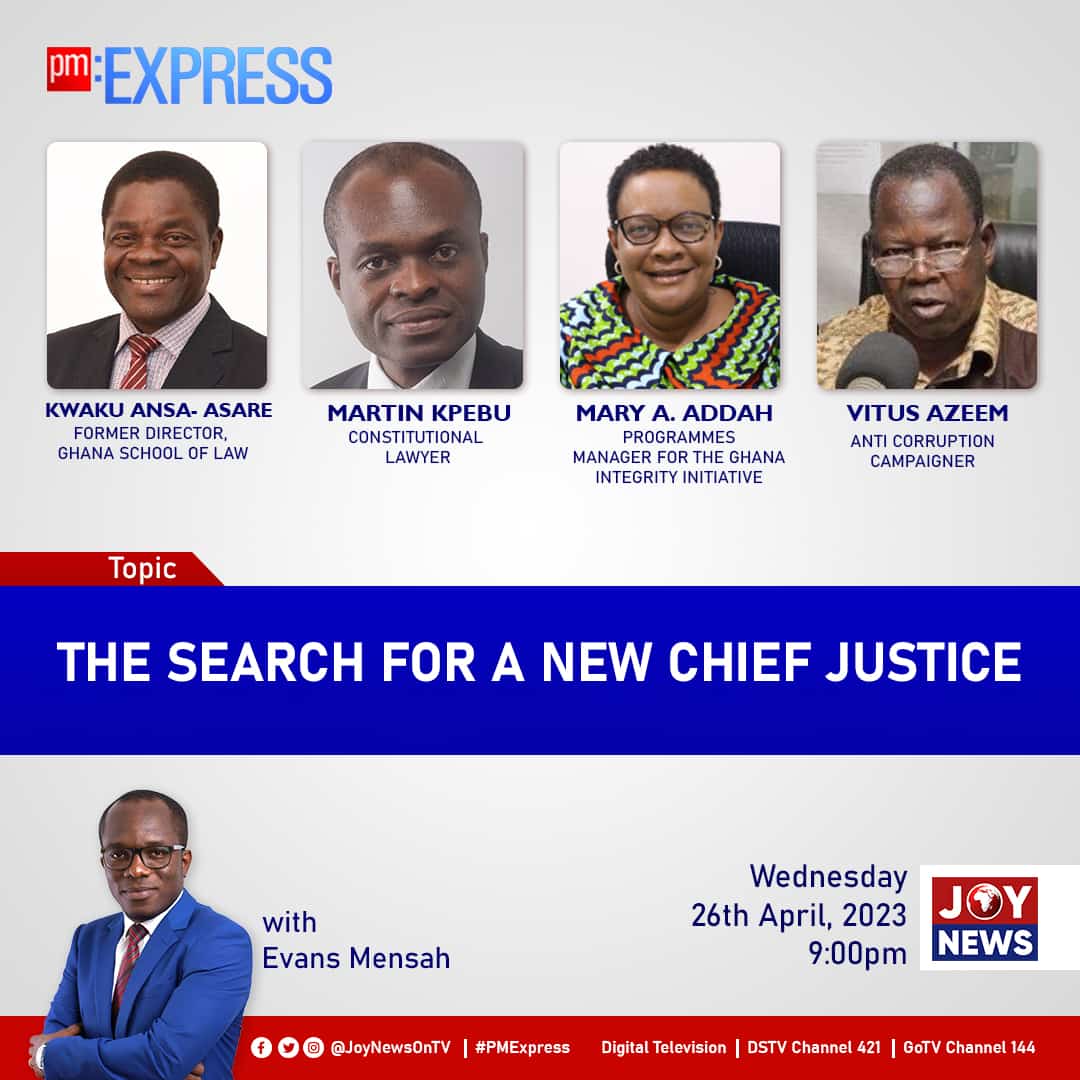 Wednesday’s edition of PM Express will be delving into the search for a new Chief Justice to replace Justice Kwasi Anim Yeboah as he retires.