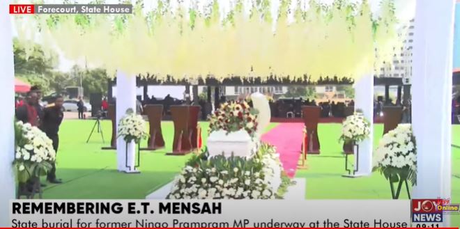 The state burial service for the former Member of Parliament for the Ningo-Prampram constituency and Council of State member, Enoch Teye Mensah is underway at the forecourt of the State House.