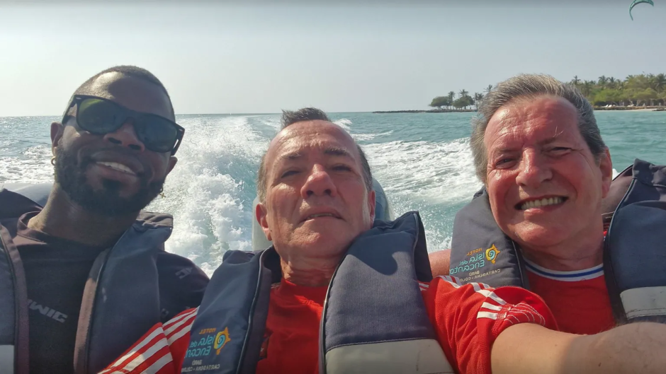 Yostin Mosquera, 34, Albert Alfonso, 62, and Paul Longworth, 71, pictured on a boat in Colombia