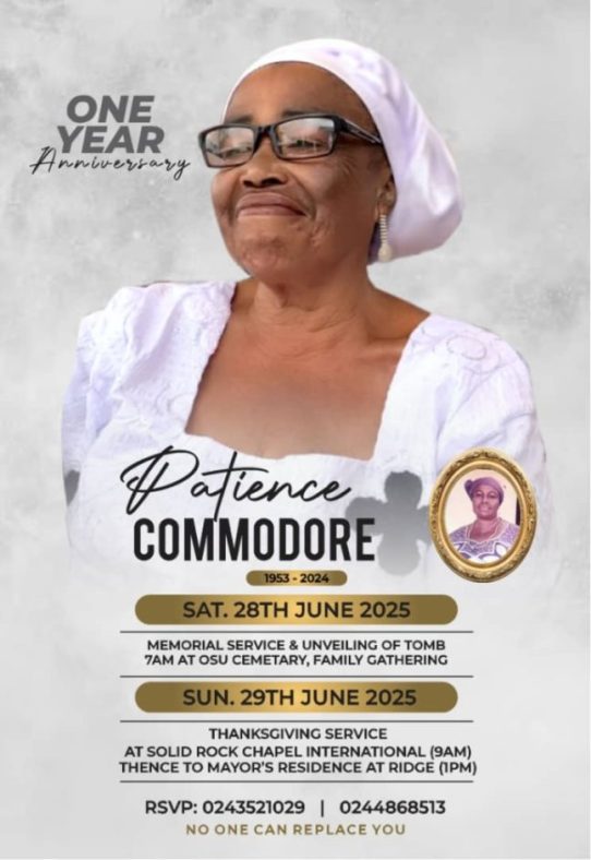 The Mayor of Accra, Michael Kpakpo Allotey, and his family will this weekend commemorate the first anniversary of the passing of his beloved mother, Madam Patience Commodore, who died in 2024.