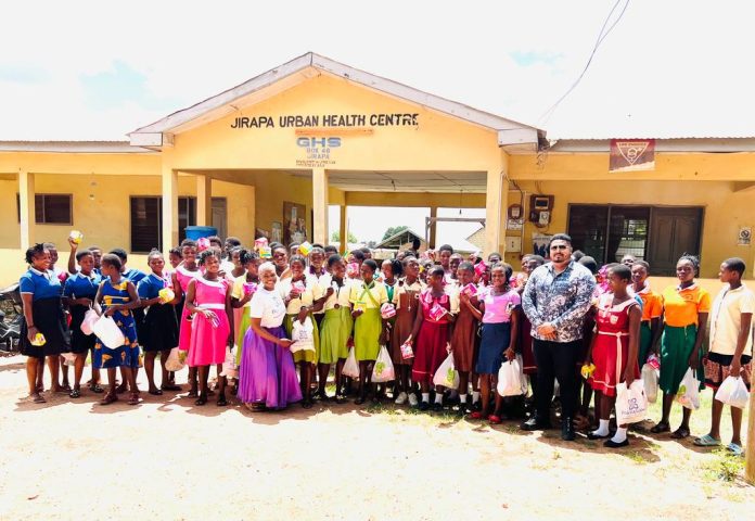 On Friday 16th June 2023 the CEO of Modern Floors Ghana, Basil David Anthony supported the Portia Gana Foundation end Period Poverty by donating Sanitary Pads & Period Cups to 500 girls in Jirapa, Upper West Region, Ghana. The donation was preceded with health talks from the nurses of Jirapa Health Urban Center and Ms. Portia Gana.