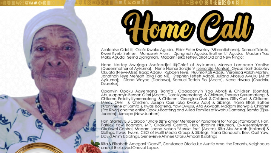 With deep sorrow and the hope of resurrection, the family announces the death of Mrs. Gertrude Opoku-Boateng (popularly known as Auntie Gertie) 1936-2024.