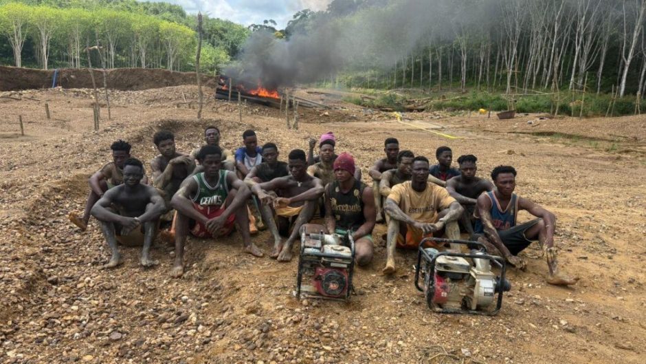 Authorities say the suspects were caught in the act of extracting gold, with their operations already causing extensive environmental damage, including the destruction of portions of palm plantations cleared for mining pits and equipment installation.
