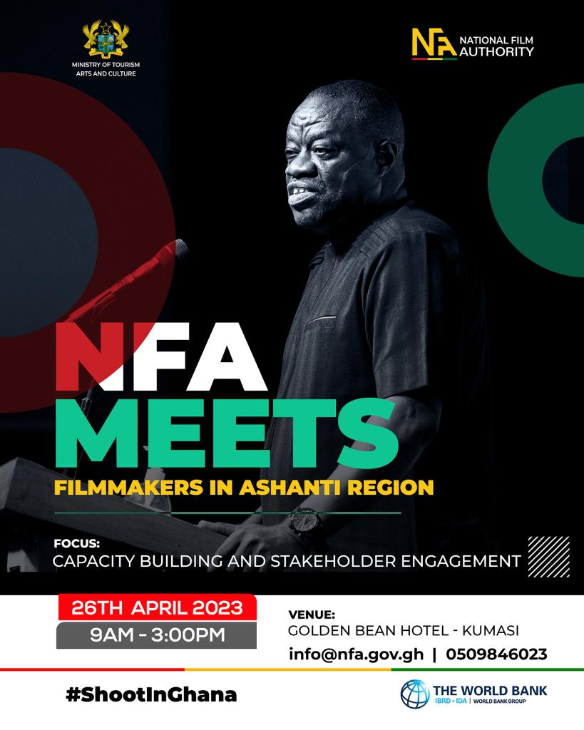 The National Film Authority (NFA) of Ghana is set to organize a one-day capacity-building workshop and stakeholder engagement for filmmakers in Kumasi. The workshop which is sponsored by the World Bank under the auspices of the Ministry of Tourism Arts and Culture (MOTAC) will be done on Wednesday, April 26, 2023, at Golden Bean Hotel. Hopefully, after this maiden one, NFA intends to replicate the workshop in Tamale and Accra