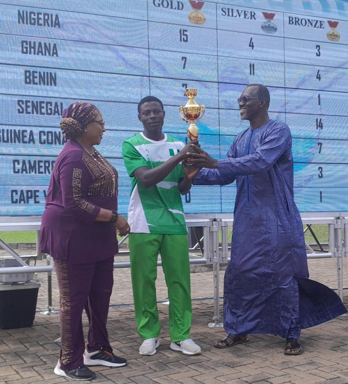 Ghana placed second with 7 gold, 11 silver and4 bronze medals, while Benin were third third with 7 gold, 1 silver and 1 bronze.