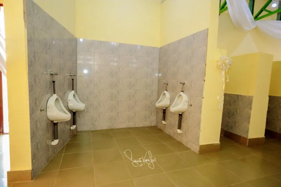 The facility, which costs a little over GH₵200,000.00, has 16 cubicles, each having a modern toilet bowl with a cistern, four urinal bowls, four hand washing basins, and an inner storeroom to keep detergents and other cleaning materials.