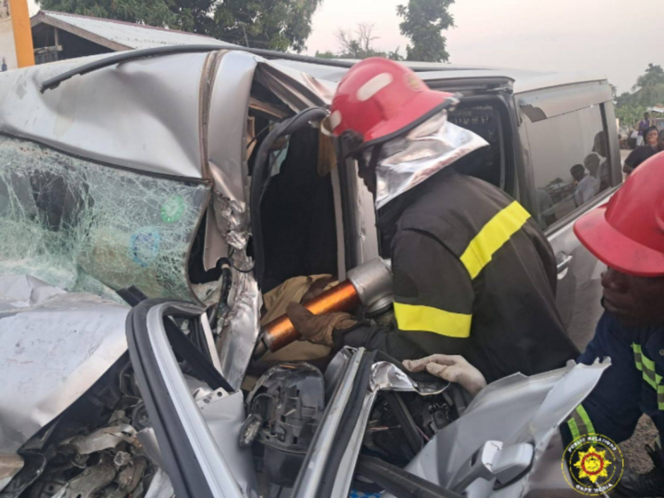 A six-member rescue team, led by ADOII Ocansey Bright, arrived at the scene to find that a Toyota Voxy had collided with a stationary MAN Diesel truck.