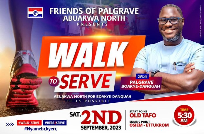 The Aspiring Parliamentary Candidate For NPP, Abuakwa North, Mr. Palgrave Boakye-Danquah is set for the maiden edition of Abuakwa North Constituency Walk To Serve.