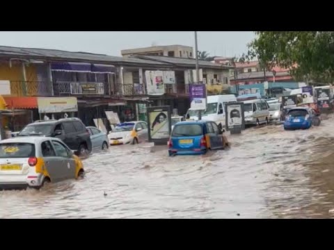 The Ofankor Barrier, Taifa Junction, Achimota, and other sites have been partially submerged by the six-hour long downpour.