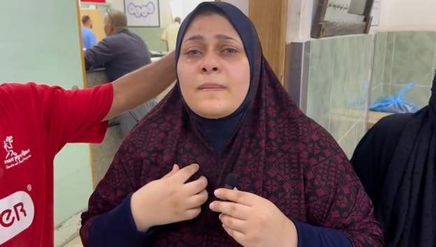 Mira’s mother, Rana Al-Sundy, was distraught and crying after her daughter was injured in an Israeli air strike